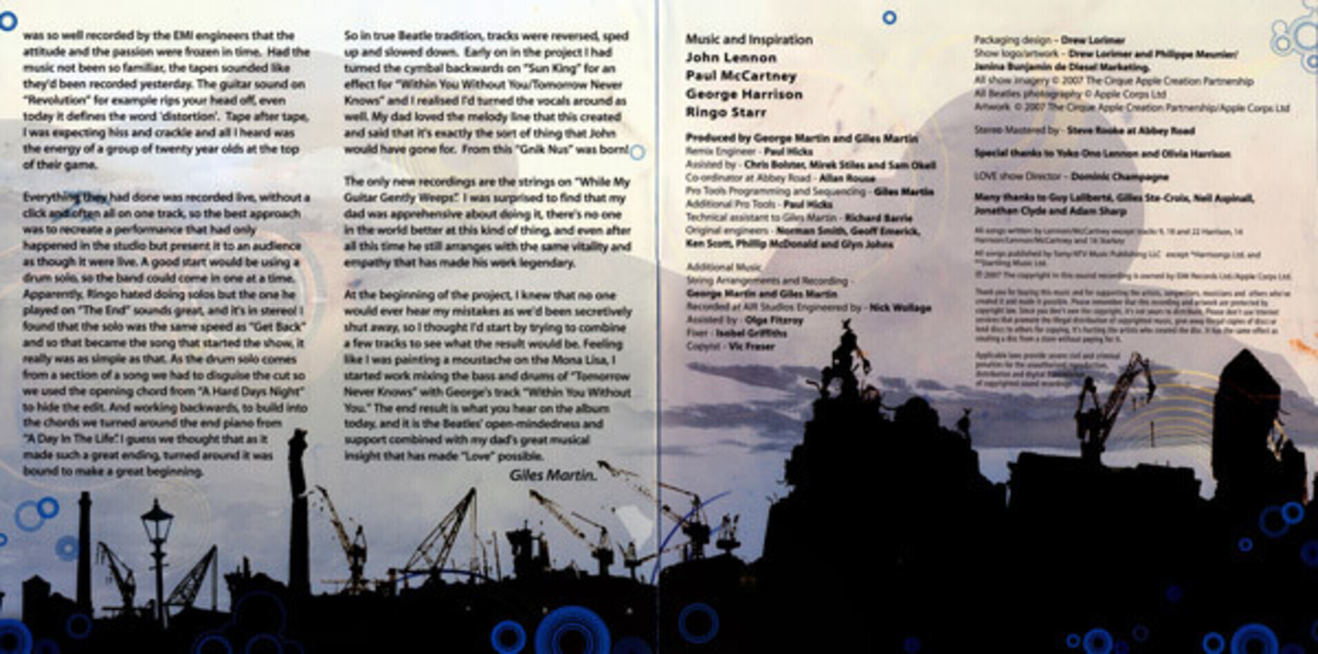 "Love" - альбом ремиксов легендарной группы The Beatles, выпущенный в 2006 году. Данный релиз это - саундтрек к одноименному шоу цирковой труппы Cirque du Soleil. Материал был подготовлен из материала, записанного во времена существования группы - альбомные композиции, треки с B-sides, концертный материал, демоверсии (студийные и домашние). Альбом получил премию Грэмми в 2008 году.