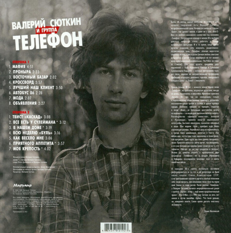 Валерий Сюткин - советский и российский певец и музыкант, композитор, автор текстов песен для рок-н-ролл группы Браво. Заслуженный артист России (2008), профессор кафедры вокала и художественный руководитель эстрадного отделения МГГУ имени М. А. Шолохова. Член Авторского Совета РАО. Валерий Сюткин был вокалистом и автором песен советской рок-группы Телефон, которая существовала с 1979 по 1985 год. Эта группа стала одним из ранних этапов его музыкальной карьеры перед тем, как он стал известен как участник группы Браво и впоследствии сольный исполнитель.