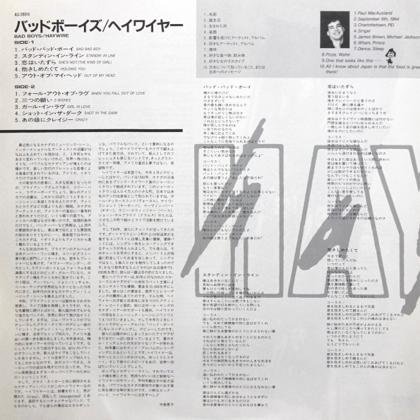 "Bad Boys" - дебютный студийный альбом группы Haywire, вышедший в 1986 году. Достиг платинового статуса в Канаде, а заглавный трек попал в Top 40.