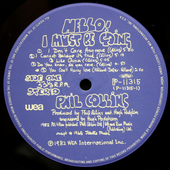 Второй студийный альбом "Hello, I Must Be Going!" Фила Коллинза, выпущенный в 1982 году. Название позаимствовано у песни американского комедийного квинтета "Братья Маркс". В поддержку альбома был организован одноимённый гастрольный тур. Альбом содержит кавер-версию композиции группы The Supremes "You Can't Hurry Love", ставшую одним из самых знаменитых синглов Коллинза.