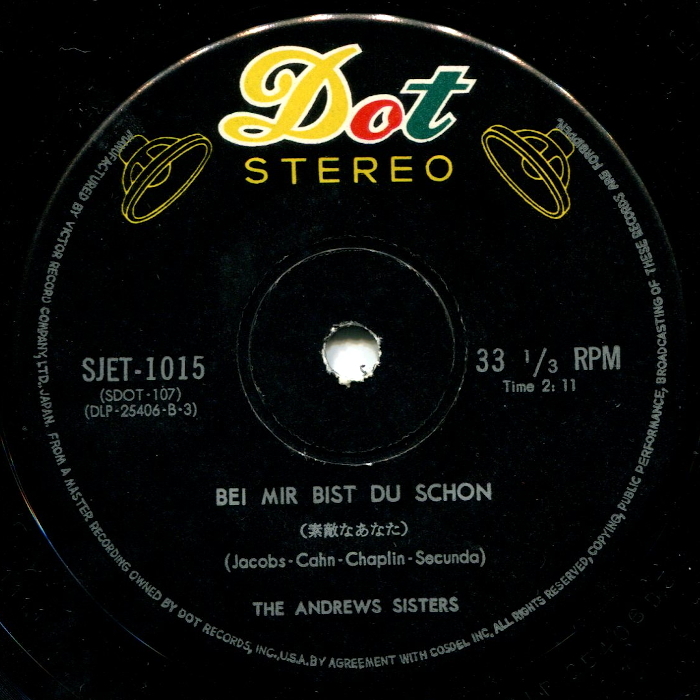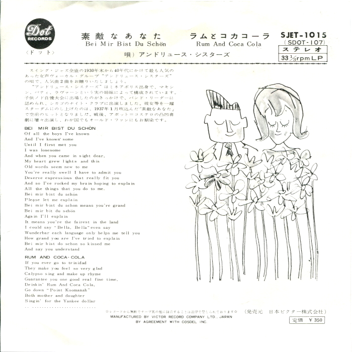 Семидюймовый сингл сестёр Эндрюс, изначально выпущенный в 1957 году. Включает два главных хита группы: англоязычную версию песни Шолома Секунды "Bei Mir Bist Du Schön" и калипсо Лорда Инвэйдера "Rum and Coca-Cola".