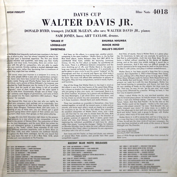 Американское переиздание 1972 года дебютного альбома американского пианиста Уолтера Дэвиса младшего, в котором представлены выступления, записанные в 1959 году.
