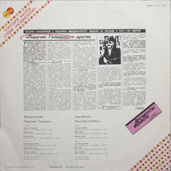 "Поручик Голицын" - макси-сингл шансонье Михаила Звездинского, выпущенный в 1991 году.