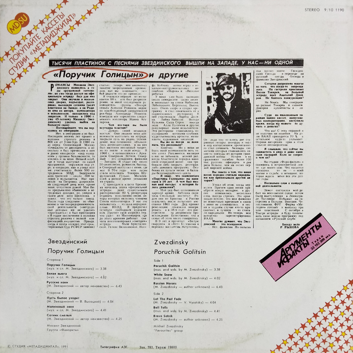 "Поручик Голицын" - макси-сингл шансонье Михаила Звездинского, выпущенный в 1991 году.