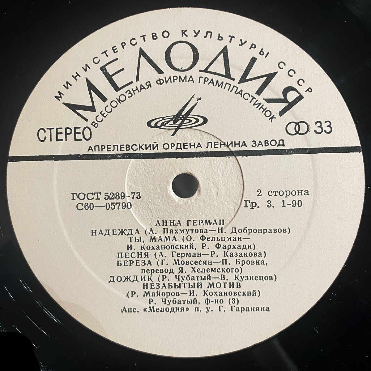 Советское издание 1982 года на чёрном виниле. Конверт и винил в состоянии, близком к идеальному. Винил в превосходном состоянии. Лейблы белые.