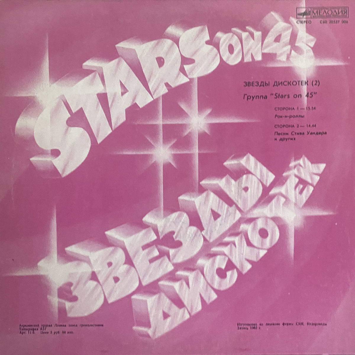 Stars On 45 - нидерландская поп-группа, созданная в начале 1981 года как студийный проект, которым руководили издатель и продюсер Shocking Blue Уильям ван Коотен и Яап Эггермонт, экс-барабанщик Golden Earring и продюсер дебютного альбома Livin’ Blues. Группа получила широкую известность благодаря своим попурри, в которых, при единой на всём протяжении песни ударной партии, она удачно имитировала стиль и манеру исполнения групп The Beatles, Rolling Stones, ABBA, Boney M., Стиви Уандера, а также исполнителей в стиле диско. Летом 1981 года группа занимала первые места в хит-парадах ведущих музыкальных журналов Голландии, Европы, Англии, США, Австралии.