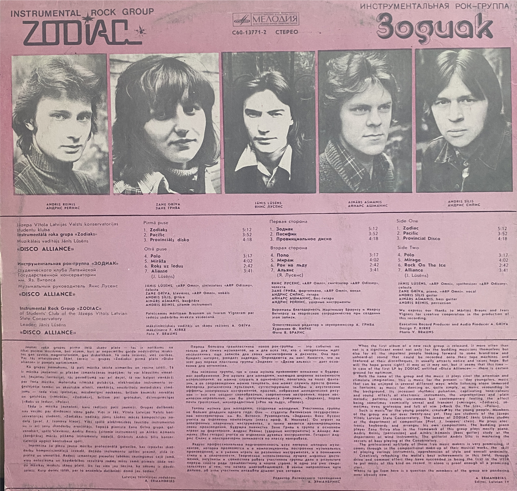 "Disco Alliance" - первый альбом латвийской группы Зодиак, выпущенный в 1980 году. Альбом разошелся по СССР большими тиражами. По данным фирмы "Мелодия", до 26 августа 1983 года было продано 5 848 980 экземпляров альбома. Запись 1980 года.