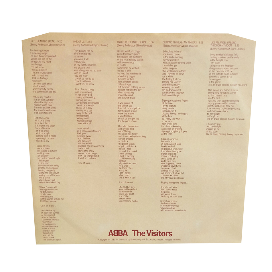 "Visitors" - восьмой студийный альбом шведской поп-группы ABBA, первоначально выпущенный в 1981 году. Релиз является последним в дискографии группы. Альбом был запрещен в СССР. В альбоме группа ABBA значительно отошла от более "легкой" поп-музыки, которую записывала ранее, и этот альбом часто считается более сложным и зрелым произведением.