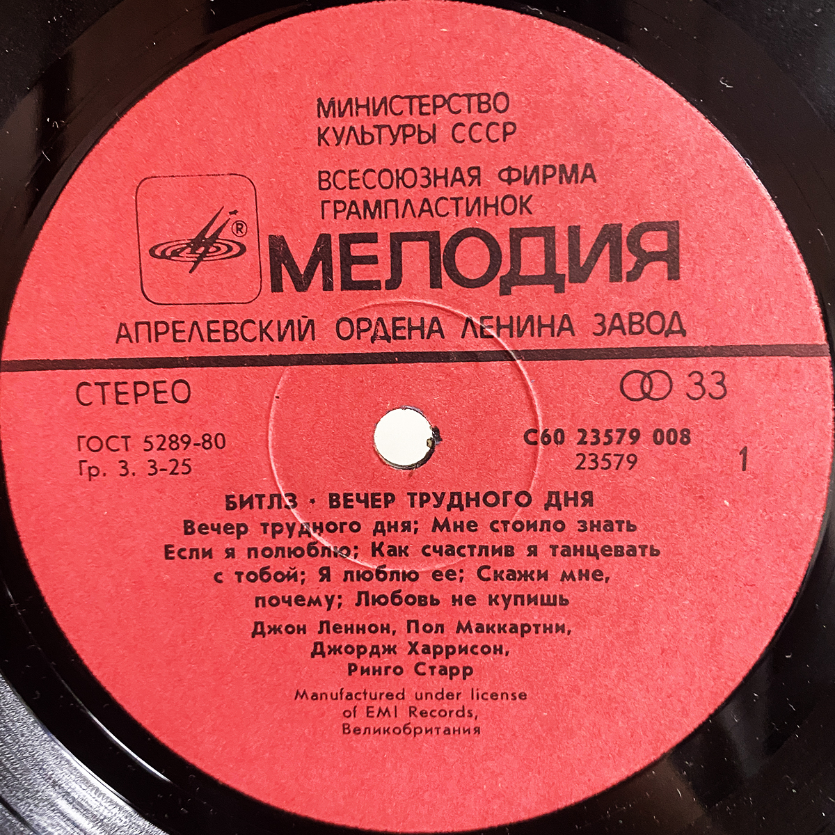 Советское переиздание 1986 года на чёрном виниле. Конверт в отличном состоянии, винил в состоянии, близком к идеальному. Лейблы красные.