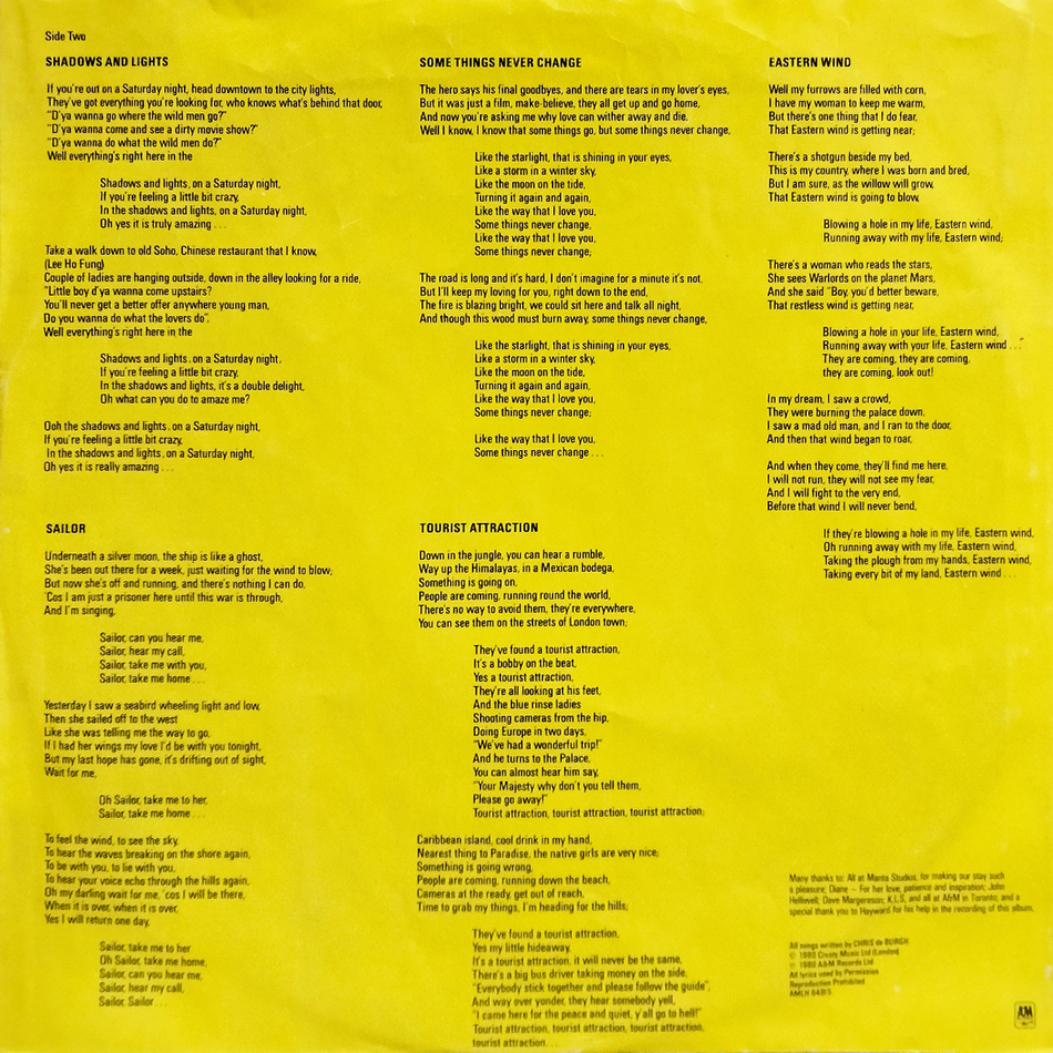 "Eastern Wind" - пятый студийный альбом ирландского рок-музыканта Криса де Бурга, выпущенный в 1980 году. Он не попал в британский чарт альбомов или Billboard 200, но достиг первого места в Норвегии в мае 1981 года и на тот момент был вторым самым продаваемым альбомом в Норвегии после "Abbey Road" группы The Beatles.