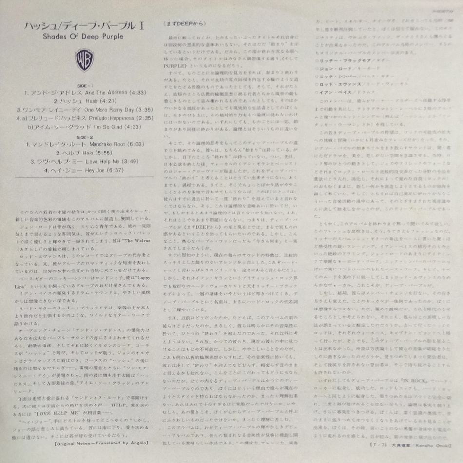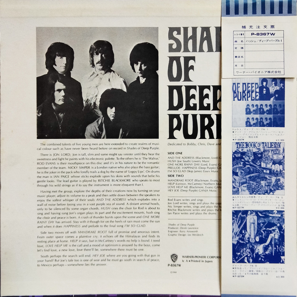 Японское переиздание 1974 года представлено на виниле черного цвета. Содержит OBI и вкладку. Открытый альбом. Конверт и винил в состоянии, близком к идеальному.