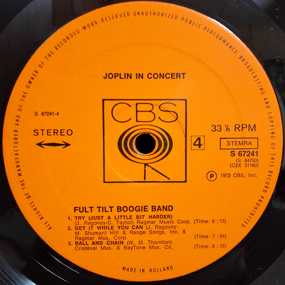 "Joplin In Concert" - концертный альбом Джанис Джоплин, выпущенный в 1972 году. Альбом был выпущен после смерти Джоплин, в виде двойного LP-альбома. Первый диск содержит записи выступлений с группой Big Brother and the Holding Company, а второй - с Full Tilt Boogie Band, записанные в разных местах в 1968 и 1970 годах. Фотографии для разворотного конверта альбома были сделаны фотографом Дэвидом Гаром в Нью-Йорке в 1969 и 1970 годах.