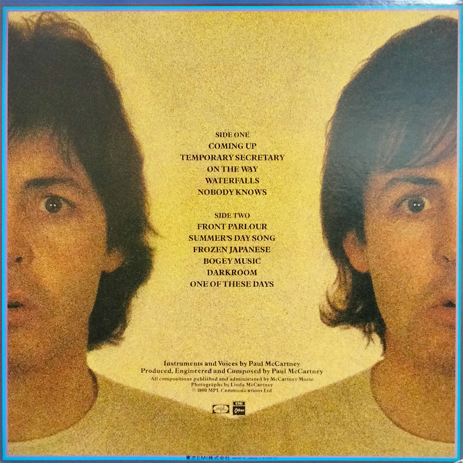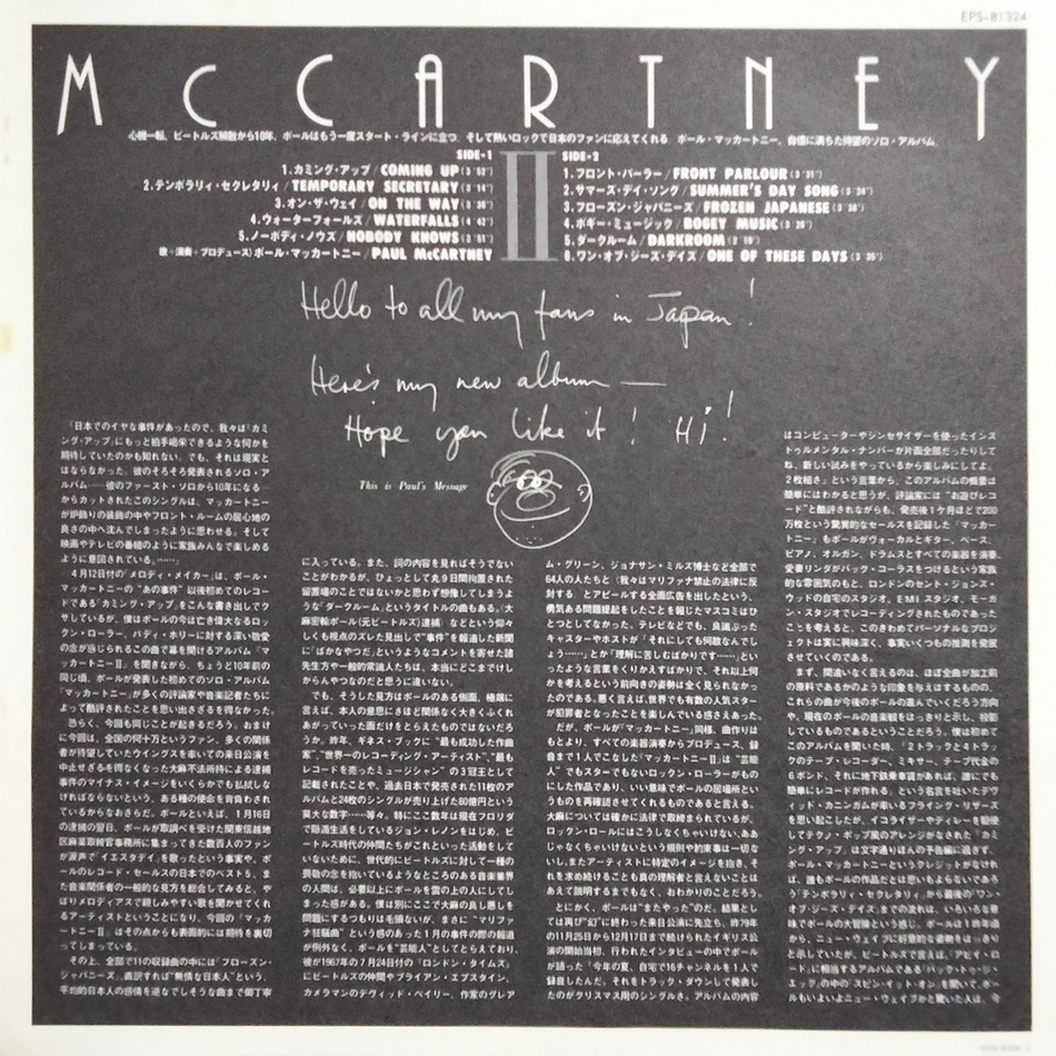 "McCartney II" - третий студийный сольный альбом Пола Маккартни, вышедший в 1980 году. Альбом представляет собой значительный отход Маккартни от его обычного стиля, так как большая часть музыки состоит из звучания синтезаторов и студийных эффектов. "McCartney II" был выпущен в середине мая 1980 (16 мая в Великобритании - лейблом Parlophone, 22 мая в США - лейблом Columbia) и вызвал неоднозначную реакцию. Но это не помешало альбому достичь 1-й позиции в чарте Великобритании и 3-й позиции в США.