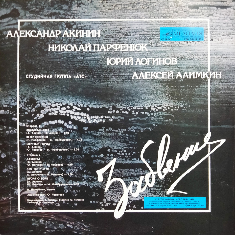 "Забвение" - студийный альбом советской рок-группы АТС, выпущенный в 1990 году. Запись 1989 года. Аранжировка – Ю. Логинов. Звукорежиссер – А. Кальянов. Руководитель – Ю. Потеенко. Вокал – Н. Парфенюк.