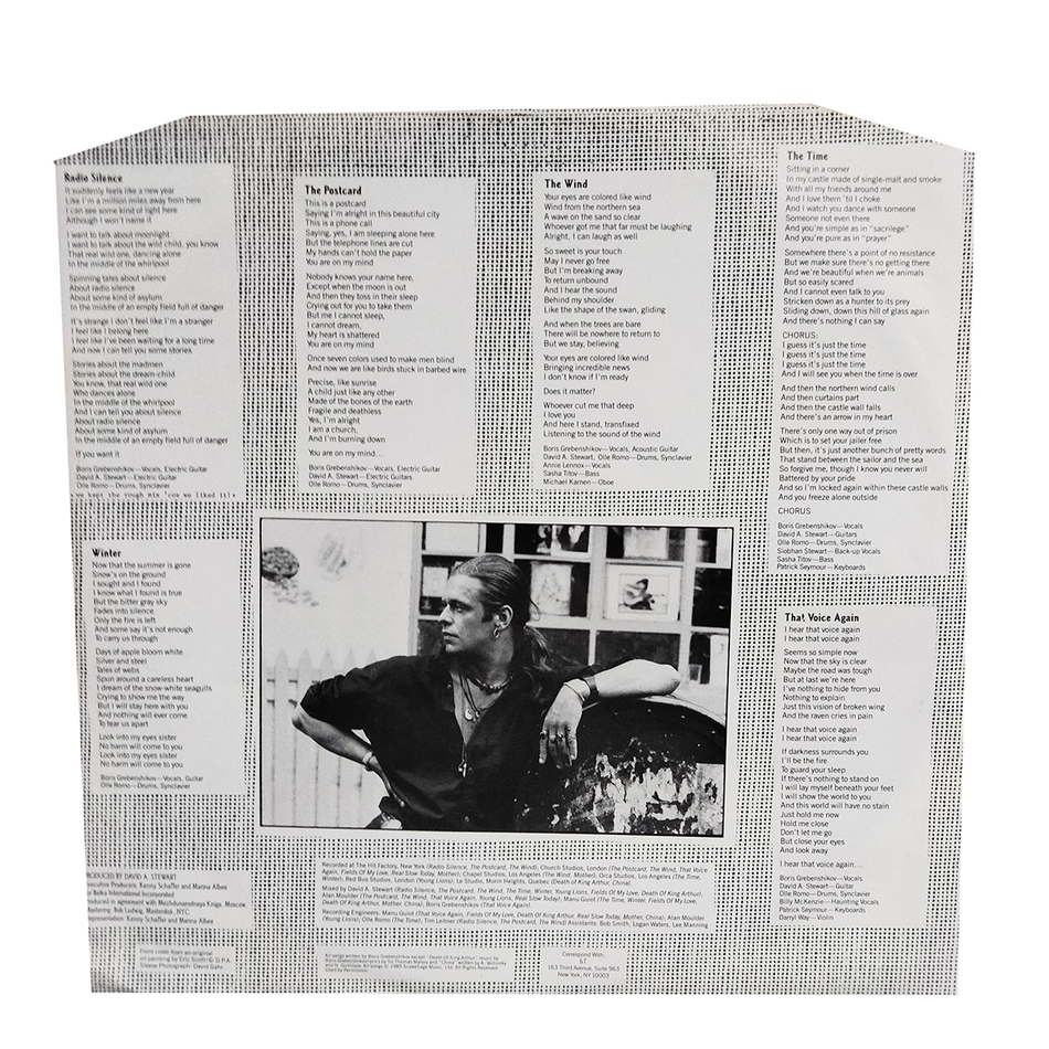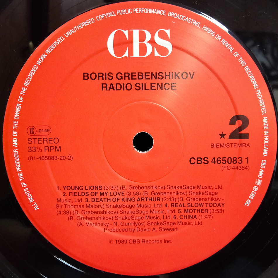 "Radio Silence" - первый студийный альбом Бориса Гребенщикова, выпущенный в 1989 году. Альбом записывался в Лондоне, Монреале, Нью-Йорке и Лос-Анджелесе в течение полутора лет с 1988 по 1989 год. Продюсером являлся Дэвид Стюарт (Eurythmics). Все песни записаны на английском языке, за исключением "Молодых львов" и стихов Николая Гумилёва, использованных в песне "Китай". Вся музыка и тексты придуманы Гребенщиковым, кроме композиции "Death of King Arthur" (рус. "Смерть короля Артура") - в ней использованы стихи Томаса Мэлори. Альбом на две недели (с 26 августа по 9 сентября 1989 года) занял 198-е место в хит-параде Top Pop Albums (ныне - Billboard 200) американского журнала Billboard. В США первый тираж альбома составил 100 тысяч экземпляров.