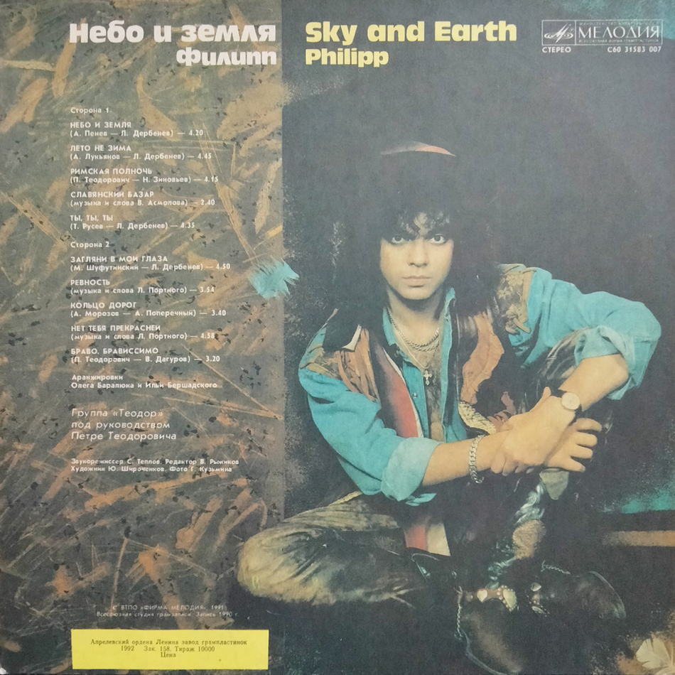 "Небо И Земля" - студийный альбом российского поп-певца Филиппа Киркорова, выпущенный в 1991 году. Аранжировка - Олег Баралюк, Илья Бершадский. Звукорежиссер - С. Теплов. Записано при участии группы Теодор под руководством Петре Теодоровича. Запись 1990 года.