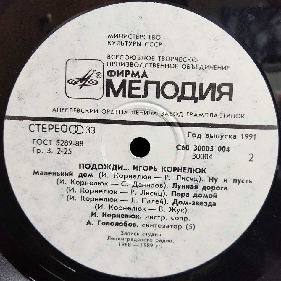 Советское издание 1991 года на чёрном виниле. Конверт в состоянии, близком к идеальному, винил в превосходном состоянии. Лейблы белые.