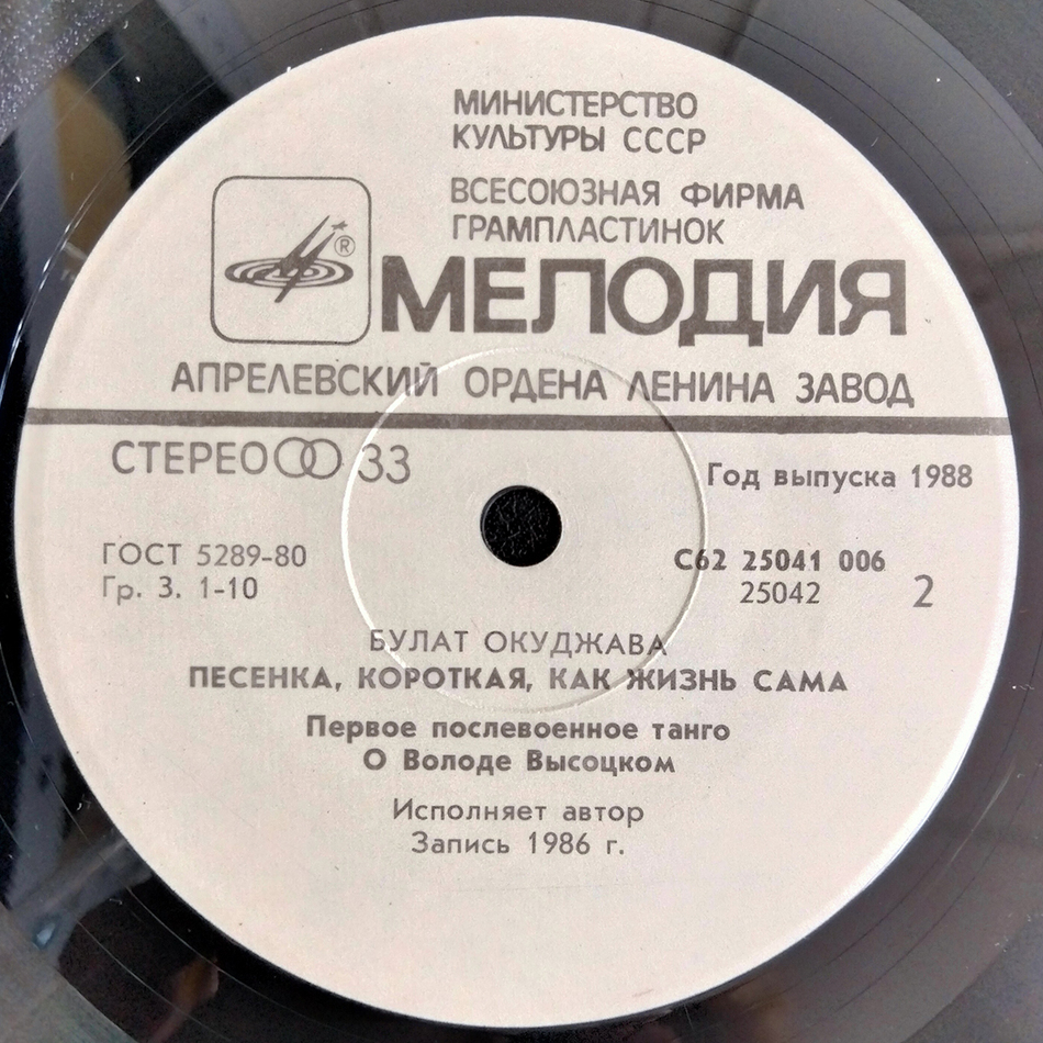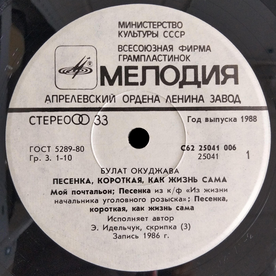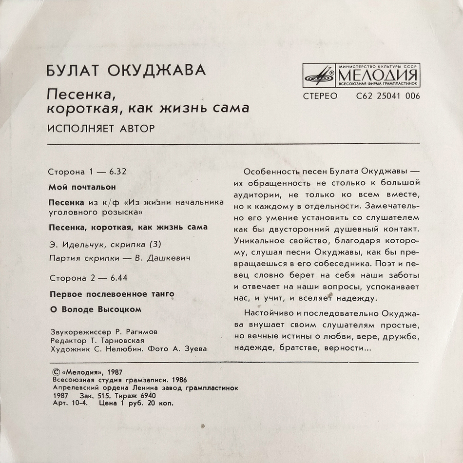 - Vinyl Single 2: Булат Окуджава – Песенка, Короткая, Как Жизнь Сама (1987)