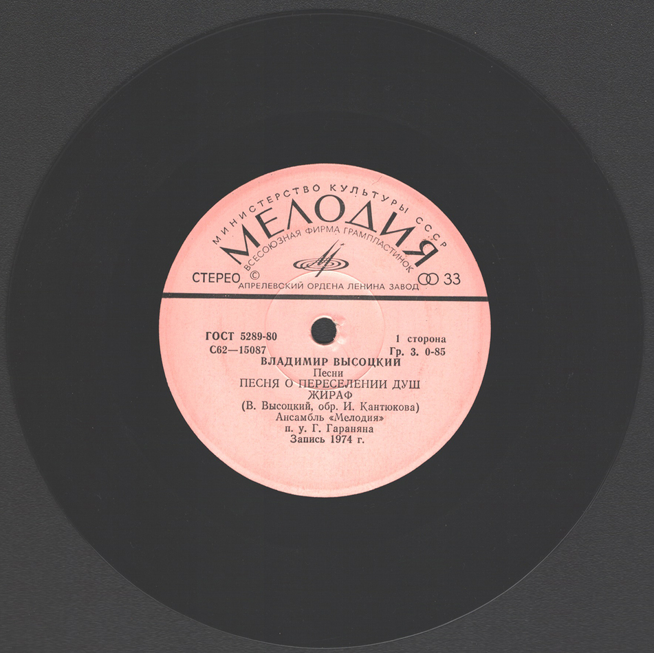 - Vinyl Single 1: Владимир Высоцкий – Песни (Песня О Переселении Душ) (1980)