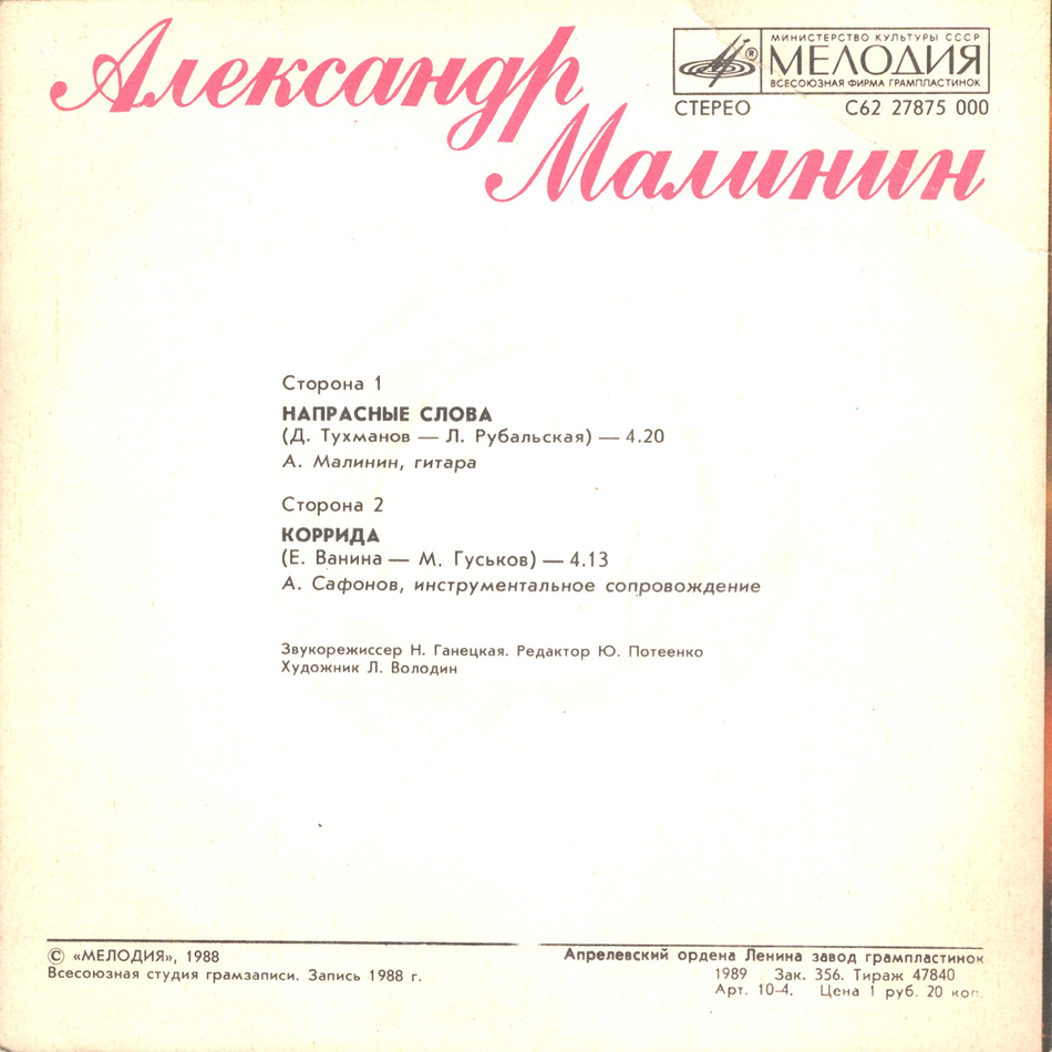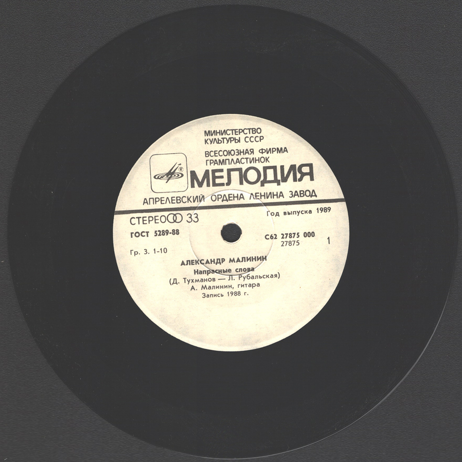 - Vinyl Single 3: Александр Малинин – Напрасные Слова (1989)