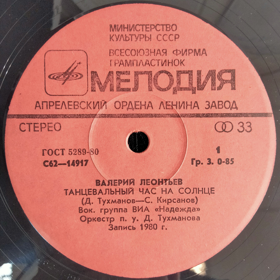 - Vinyl Single 2: Валерий Леонтьев – Танцевальный Час На Солнце (1980)