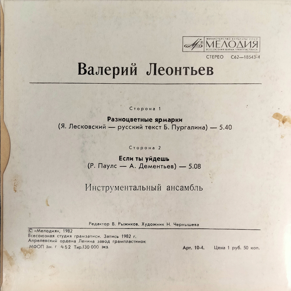 - Vinyl Single 4: Валерий Леонтьев – Разноцветные Ярмарки (1982)