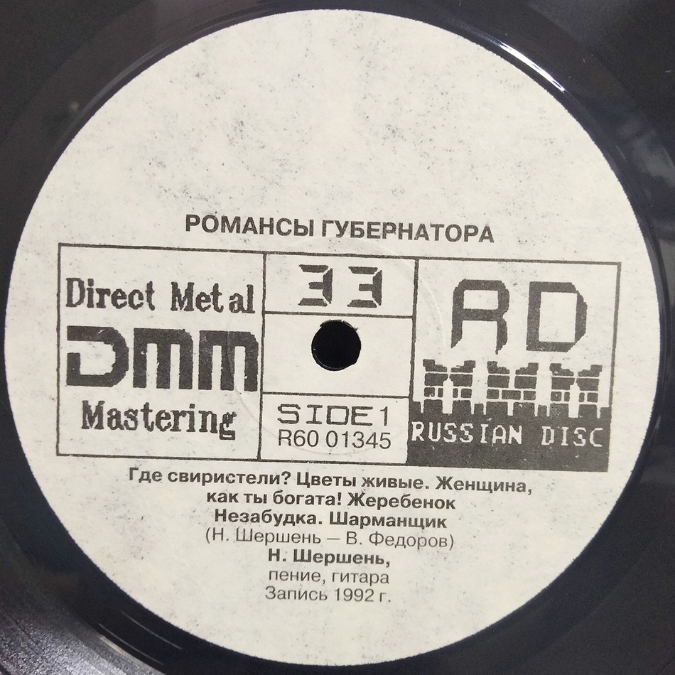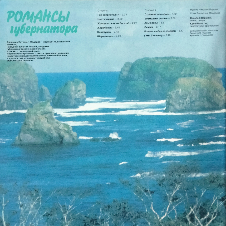 "Романсы Губернатора" - студийный альбом Николая Шершня, выпущенный в 1992 году. Продюсер Валерий Ильин. Звукорежиссер В. Машалкин. Запись 1992 года.