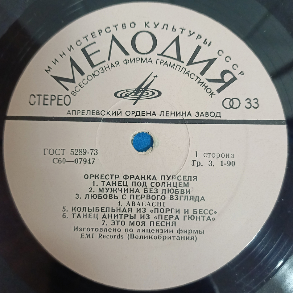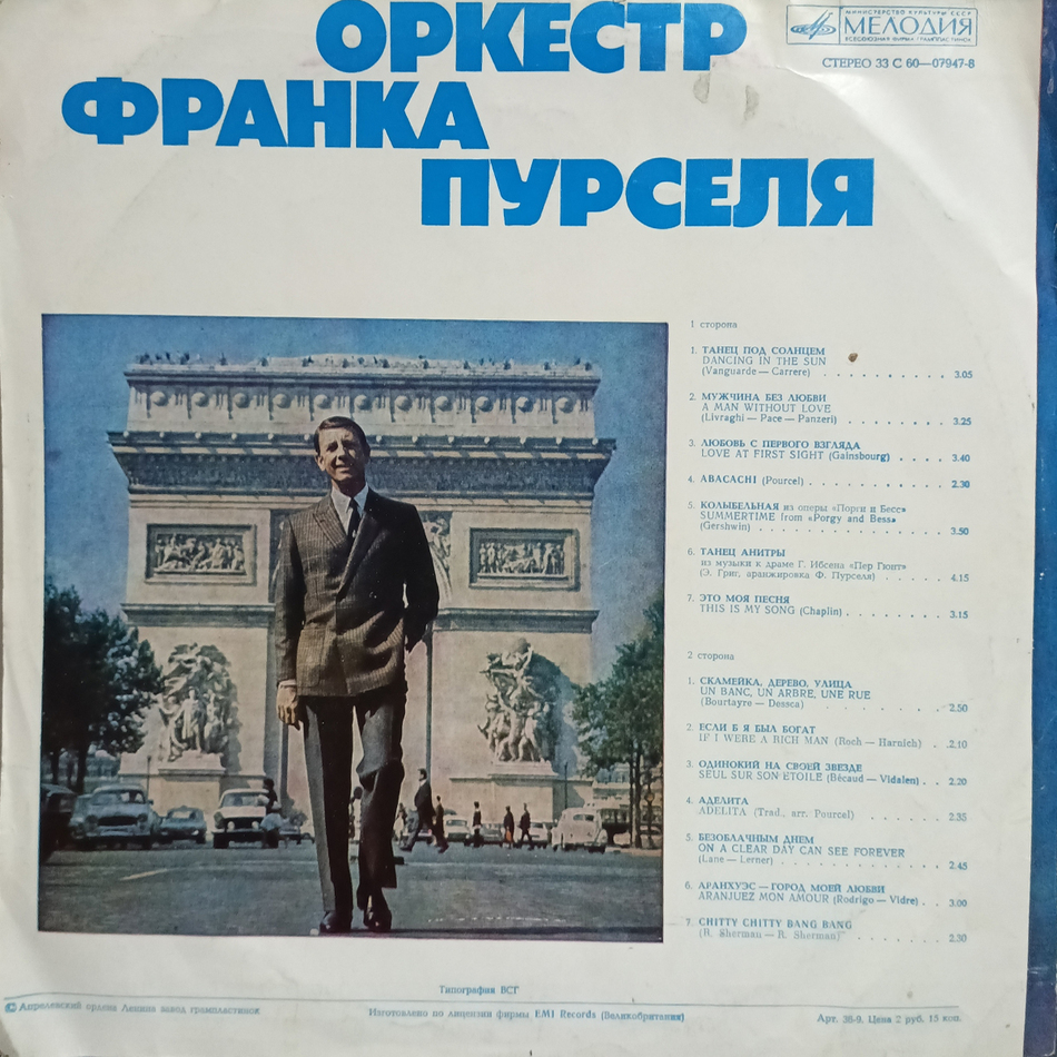 "Оркестр Франка Пурселя" - советское переиздание студийного альбома "This Is Pourcel" Оркестра Франка Пурселя, выпущенного в 1972 году. Содержит такие треки как "Dancing In The Sun", "Love At First Sight", "Summertime" и многие другие.