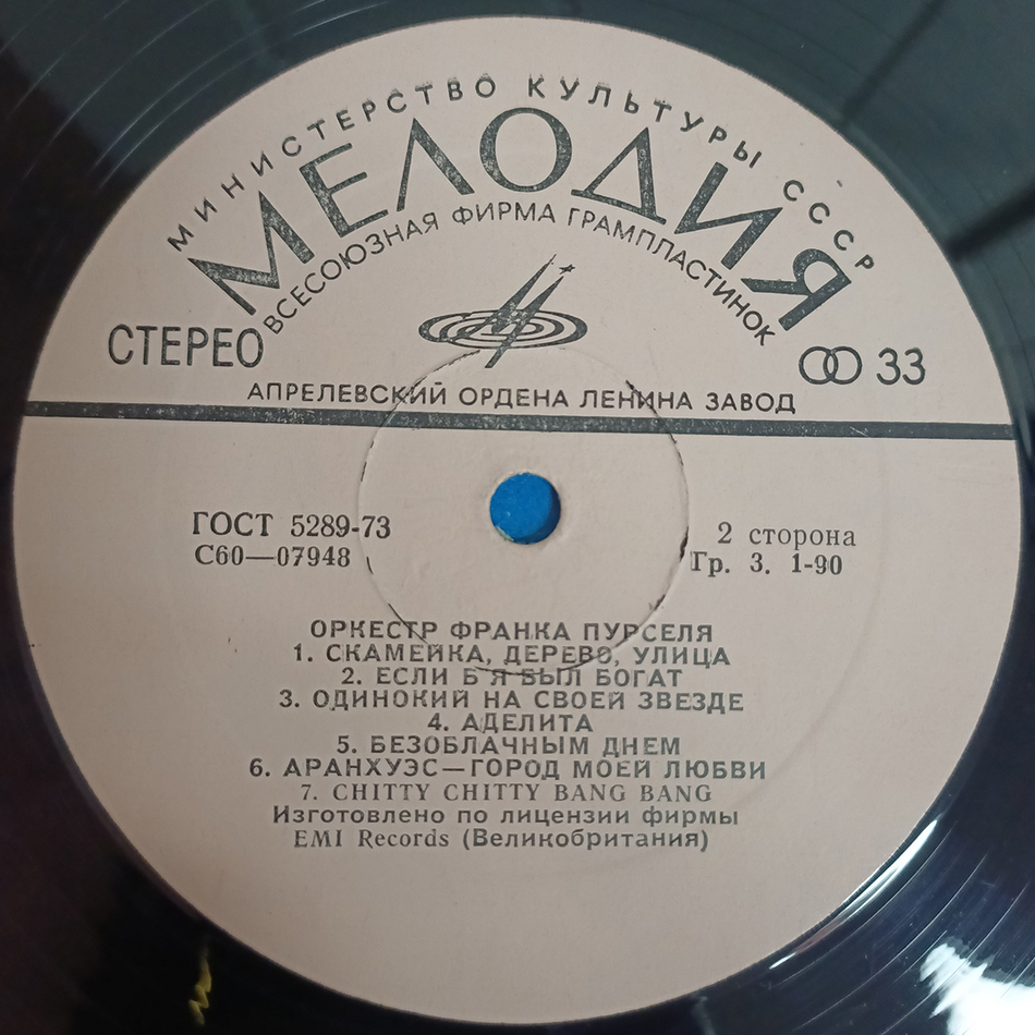 Советское переиздание 1976 года на чёрном виниле с альтернативной обложкой. Конверт в хорошем состоянии, винил в превосходном состоянии. Лейблы белые.