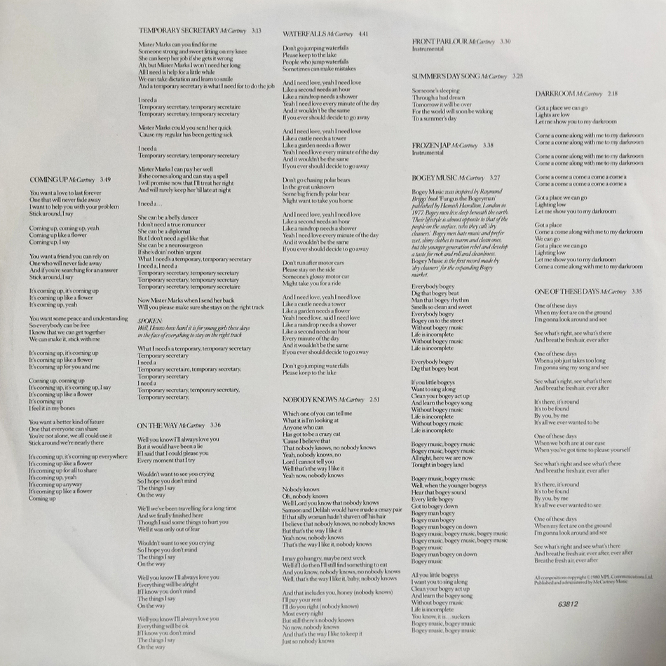 "McCartney II" - третий студийный сольный альбом Пола Маккартни, вышедший в 1980 году. Альбом представляет собой значительный отход Маккартни от его обычного стиля, так как большая часть музыки состоит из звучания синтезаторов и студийных эффектов. "McCartney II" был выпущен в середине мая 1980 (16 мая в Великобритании - лейблом Parlophone, 22 мая в США - лейблом Columbia) и вызвал неоднозначную реакцию. Но это не помешало альбому достичь 1-й позиции в чарте Великобритании и 3-й позиции в США.