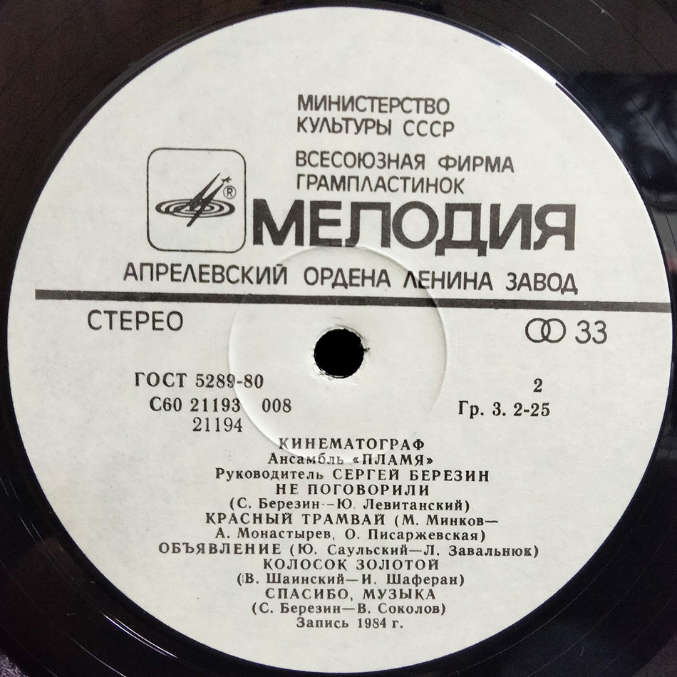 Советское издание на чёрном виниле. Конверт в отличном состоянии, винил в состоянии, близком к идеальному. Лейблы белые.