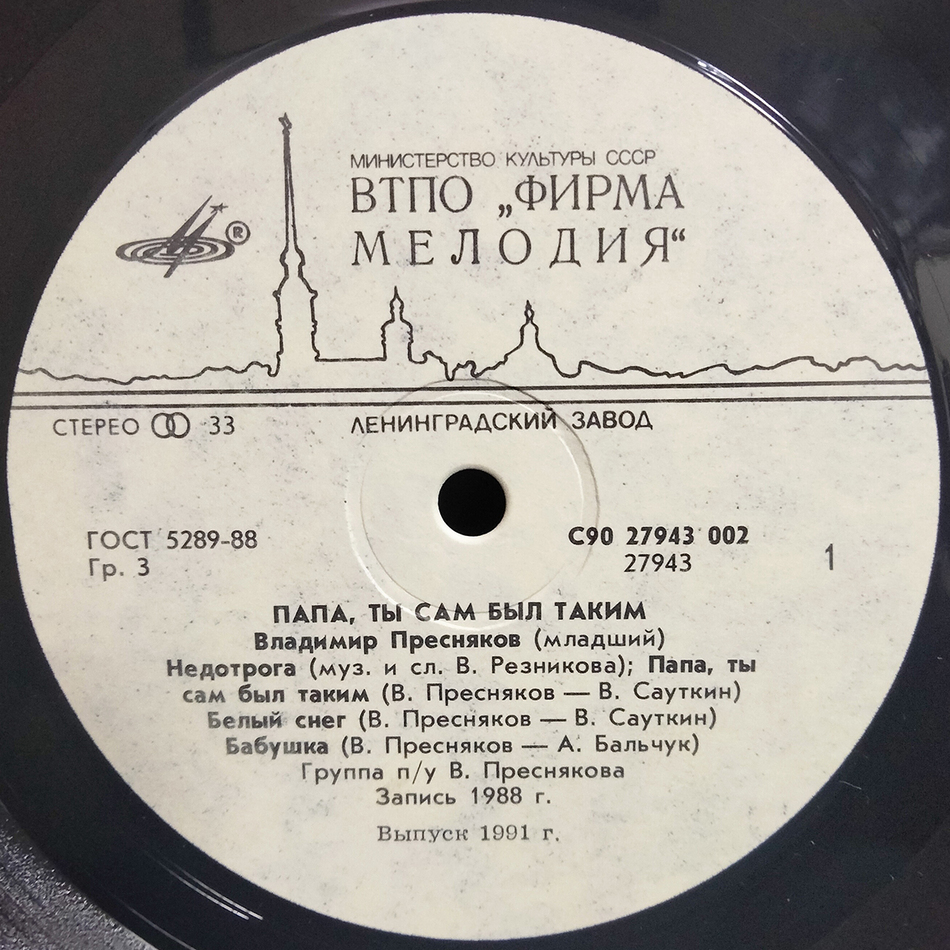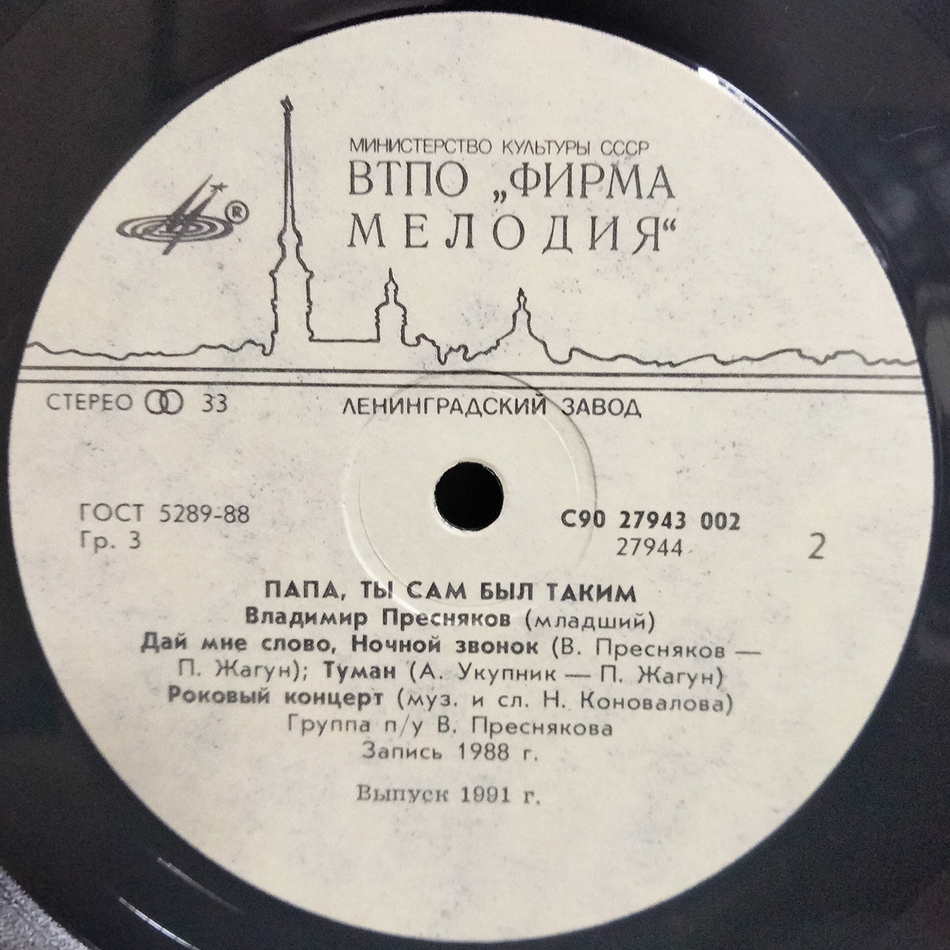 Советское повторное издание 1991 года на чёрном виниле. Конверт и винил в состоянии, близком к идеальному. Лейблы белые.