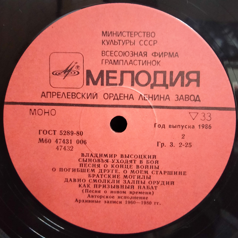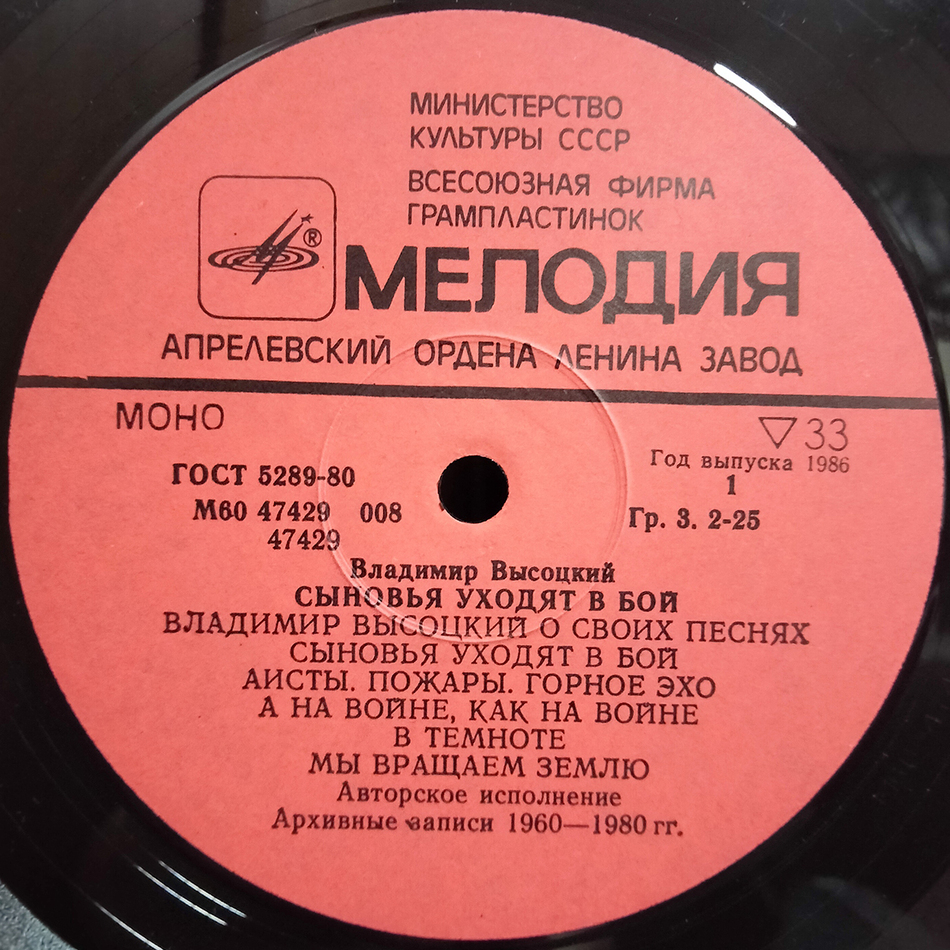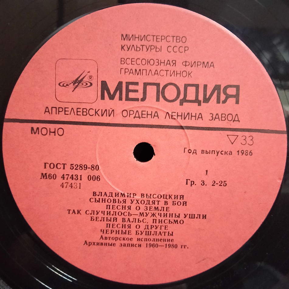 Советское издание на чёрном виниле в моно звучании. Конверты в превосходном состоянии, винил в состоянии, близком к идеальному. Лейблы красные.