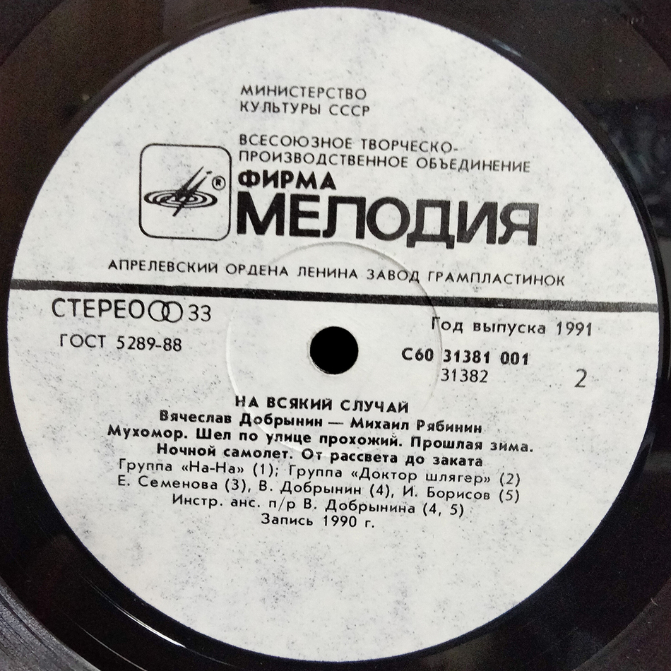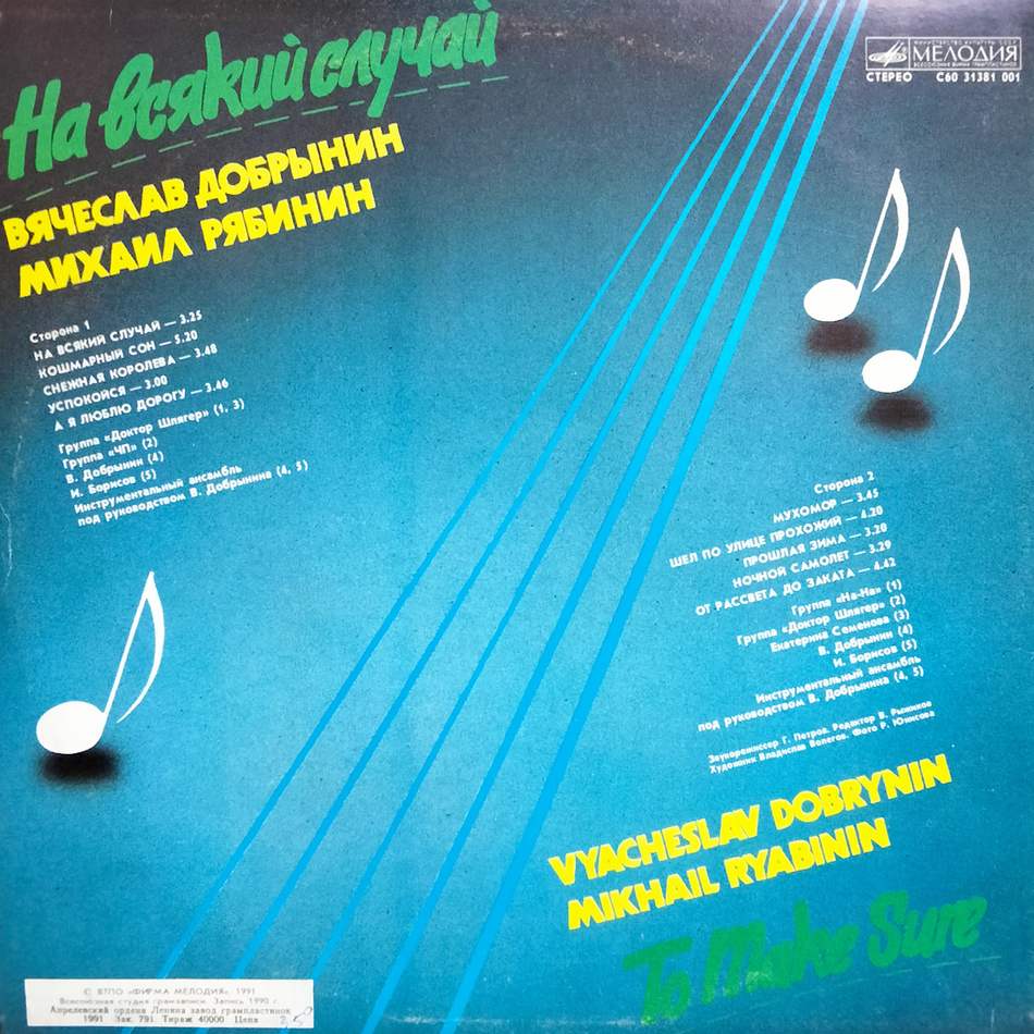 "На Всякий Случай" - студийный альбом композитора Вячеслава Добрынина и поэта Михаила Рябинина, выпущенный в 1991 году. Звукорежиссёр Г. Петров. Автор слов – Михаил Рябинин. Автор музыки – Вячеслав Добрынин. Записано при участии инструментального ансамбля под руководством В. Добрынина, группы На-На, ЧП и других исполнителей. Запись 1990 года.