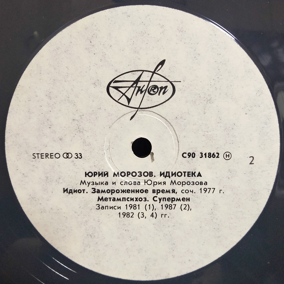 "Идиотека" - альбом советского и российского рок-музыканта Юрия Морозова, вышедший в 1991 году. В пластинку вошли как ранние работы ("Обезьяна", "А Мне И Так Конец"), так и более поздние произведения, среди которых выделяются "Красотка-Лошадь", "Зов Неба", "Краски Цветенья", "Кретин", "Идиот", "Замороженное Время", "Метампсихоз" и "Супермен". Записи 1976-1987 годов.